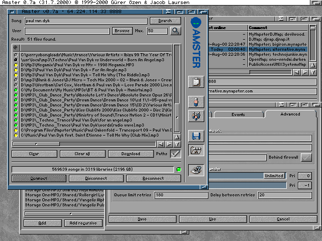 Amster 0.7a. Amigasok kozott is vannak MP3 buzik. Ezt tanusitja az egyik szinten ingyenes Napster kliens, amely itt 16 szinben lathato.